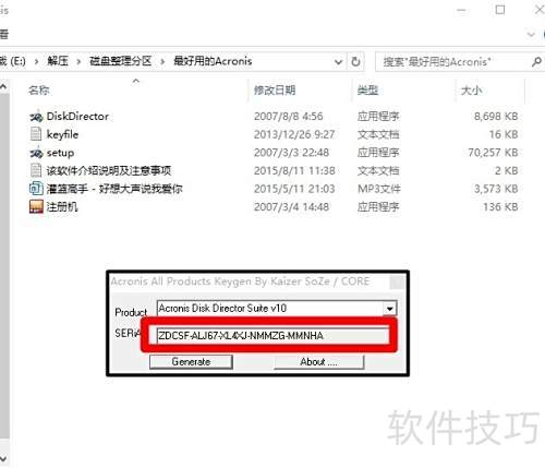 15、 在注册机界面的下拉菜单里,选择Acronis Disk Director Suite v10即可完成操作。