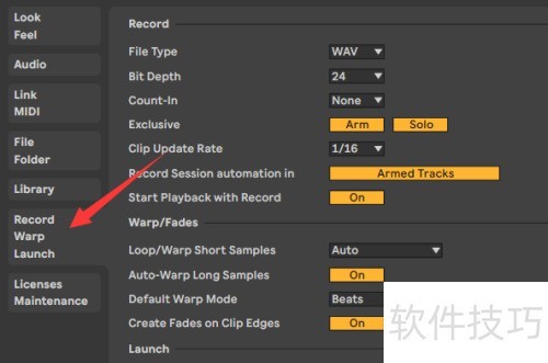 4、 在设置界面左侧点击Record选项,进入录音配置页面。