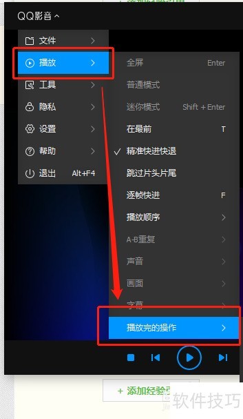3、 进入播放菜单,选择播放完毕后的操作进行设置。