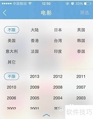 6、 在电影页面右上角设有筛选功能,相比排序查找更为精准高效。用户可根据地区、年份及影片类型进行筛选,类型涵盖丰富关键词,如爱情、外星人、古装、肥皂剧等,便于快速定位符合个人喜好的影片,提升浏览与查找体验。