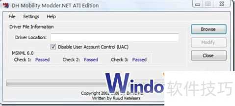 1、 为解决此问题,经过持续多日的资料查找与测试,最终找到可行方案。首先访问方正官网,下载适用于桌面版ATI Xpress 200M的显卡驱动程序。运行安装程序后,选择解压路径,但不进行完整安装,而是中途取消。随后,下载并启动一款名为DH Mobility Modder.NET的驱动修改工具,通过其界面中的Browse功能定位到此前解压出的驱动文件夹,再点击Modify按钮对驱动文件进行适配性修改,使其兼容移动平台及Windows 7系统。