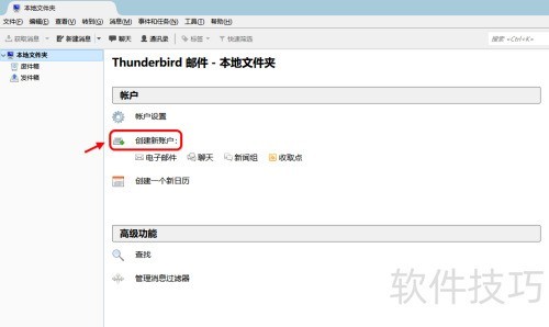 1、 启动雷鸟客户端,进入本地文件夹中的账户选项,点击即可查看电子邮件。