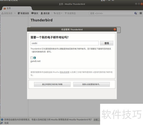 1、 启动Thunderbird并设置您的电子邮件账户。