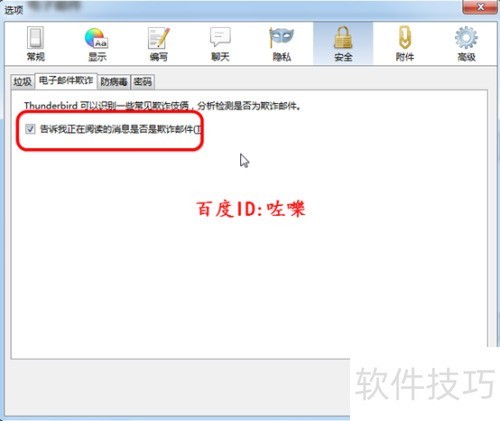 12、 对于疑似诈骗或含病毒的邮件,Thunderbird可自动提醒用户。该功能可在选项—安全—电子邮件欺诈中开启,帮助识别并警示可疑邮件,提升邮箱安全性,有效防范网络钓鱼等欺诈行为。