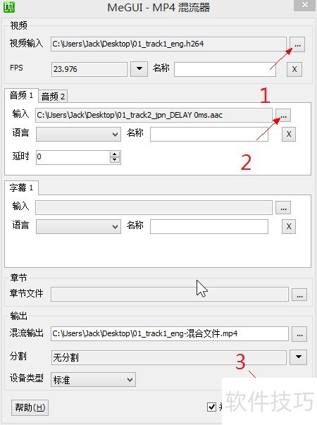 5、 启动MeGui,依次选择内置工具、混流器及MP4混流功能。