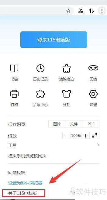 5、 以上便是115电脑版浏览器查看版本信息的全部操作步骤。