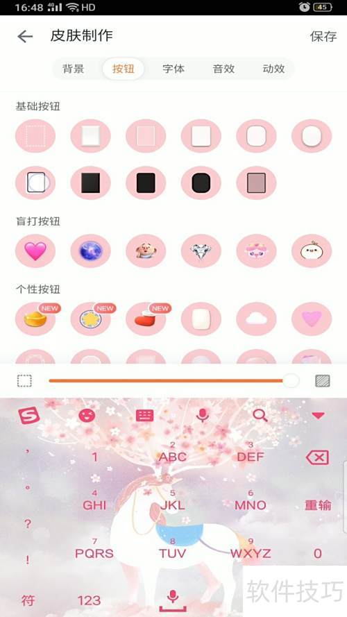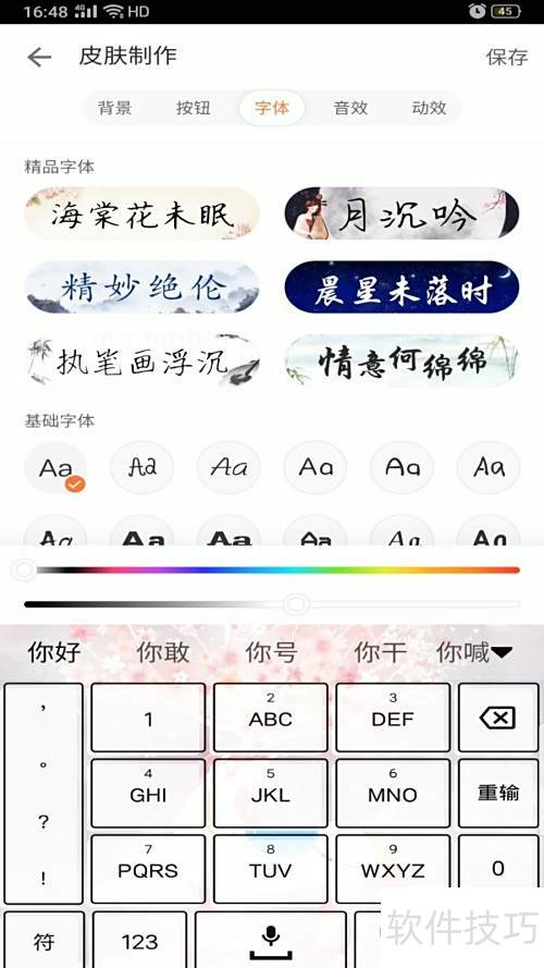 3、 挑选喜欢的背景、按钮、字体及音效动效。