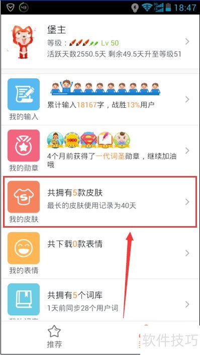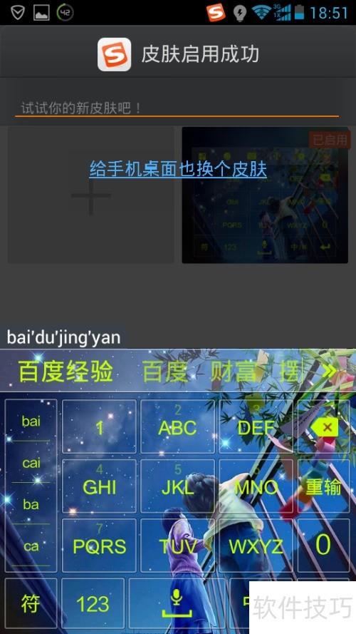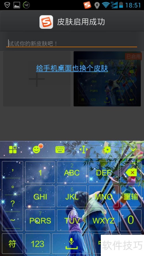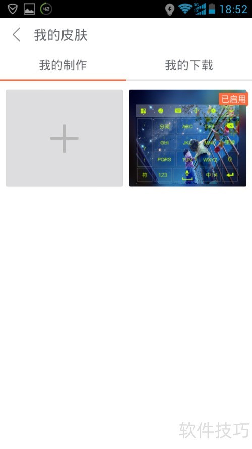 11、 自制搜狗输入法皮肤会保存于个人中心的我的皮肤栏目里,方便随时管理与使用。
