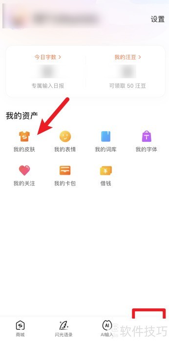 1、 进入个人中心,在资产区域选择皮肤管理。