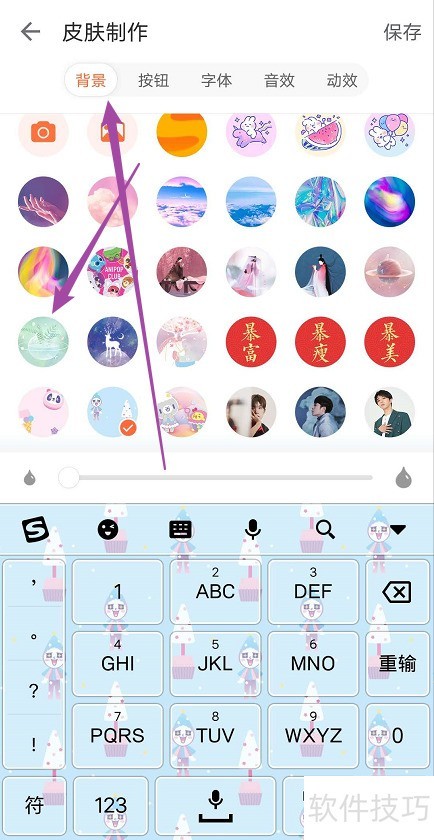 9、 挑选背景并调整右侧效果,最后点击保存,操作即完成。