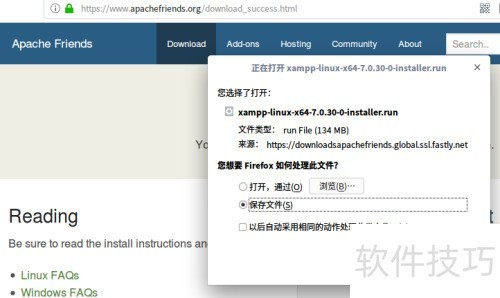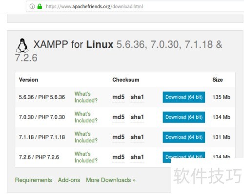 1、 XAMPP是一款集成了Apache、MariaDB、PHP和Perl的便捷套件,安装过程简单直观,只需下载安装程序即可通过图形界面完成配置。它兼容Windows、Linux和macOS系统,用户可从官方网站获取对应版本。本文选择的是Linux版本,具体下载情况所示。