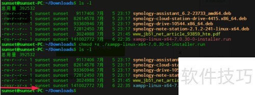 4、 为xampp-linux-x64-7.0.30-0-installer.run文件赋予可执行权限,使用命令 chmod +x,操作方式所示。