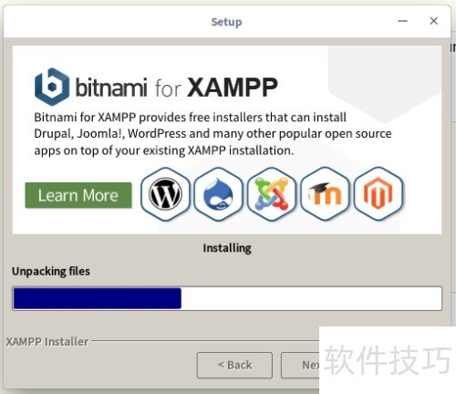 6、 点击下一步开始安装,按提示操作,程序将自动安装至/opt/lampp目录,具体过程所示。
