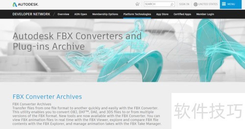 7、 首先,可前往Autodesk官网的FBX转换器存档页面,查找并下载Autodesk FBX Converters工具,该页面集中提供了不同版本的转换器供用户选择与使用。