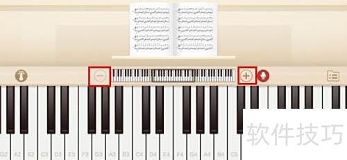3、 界面上的+-按钮可用于调节钢琴键盘模拟器的大小,可根据个人需要灵活调整,方便使用。