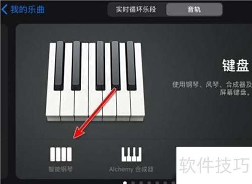 2、 在音轨页面滑动至键盘,点击智能钢琴即可进入演奏界面。