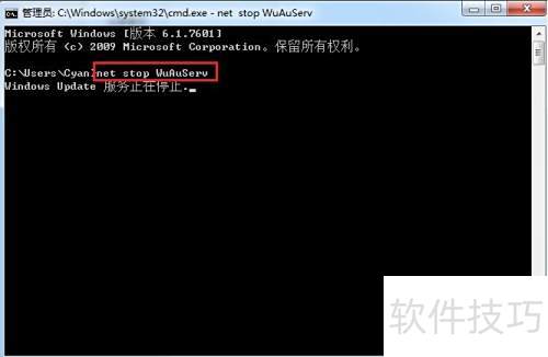 1、 方法一:点击开始菜单,运行中输入cmd,进入命令提示符后键入net stop WuAuServ以停止服务。