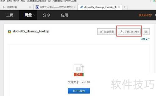 9、 下载dotnetfx清理工具后,解压至当前目录即可使用。