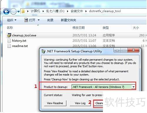 8、 若因.NET Framework 4.0未彻底卸载而导致安装失败,可尝试使用微软官方提供的.NET Framework自动清理工具进行清除。该工具能有效移除残留组件,为重新安装创造条件。工具下载地址:http://pan.baidu.com/s/1dDTzyNZ,提取码:g2yk。