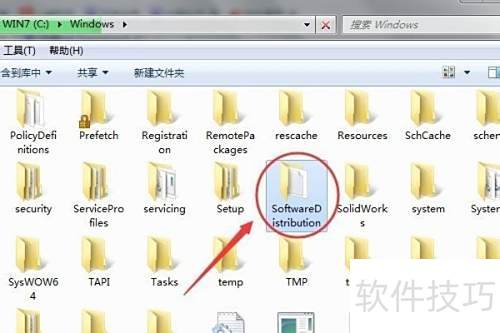 3、 打开文件夹后,进入其中查找名为SoftwareDistribution的文件夹。