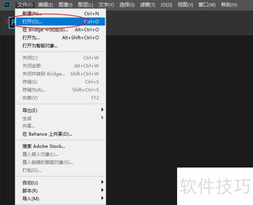 1、 在起始页面点击文件菜单,选择打开选项。