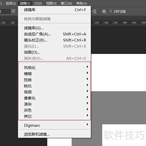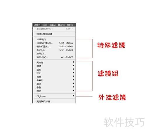 4、 滤镜组位于菜单栏,包含风格化、模糊、扭曲、锐化等多个子功能,是多种图像处理效果的统称。