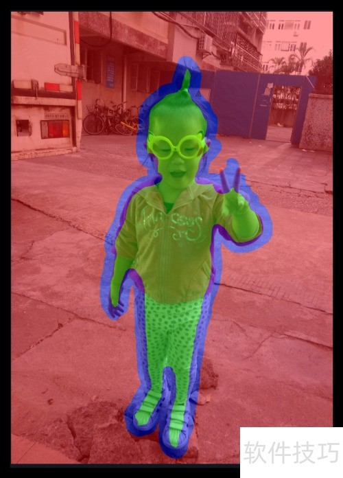 5、 打开后可见图片自动叠加红色图层,用于标记无需保留的区域。