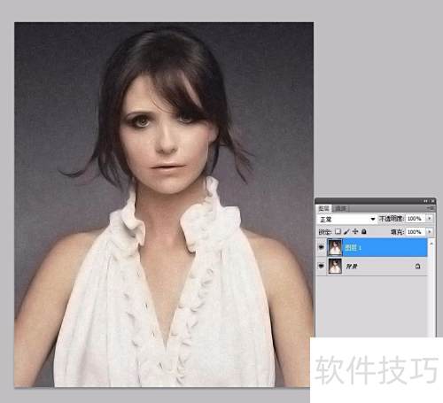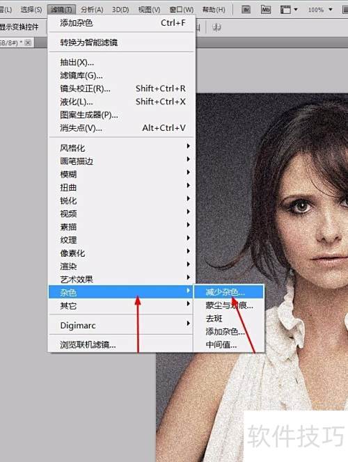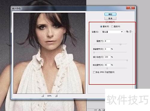 6、 选择滤镜中的减少杂色功能,按提示设置参数,使用Ctrl+F重复执行一次,处理效果所示。