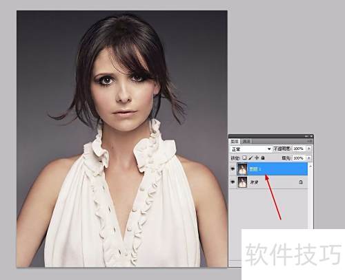 1、 启动PSCS5软件,通过文件菜单或快捷键Ctrl+O打开图片素材,随后使用Ctrl+J复制图层。