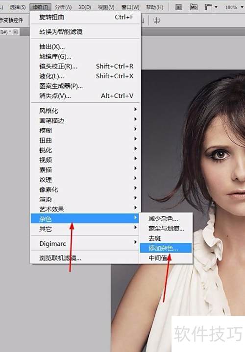 7、 对比图展示两次操作效果,重点说明滤镜中添加杂色与减少杂色的功能应用。