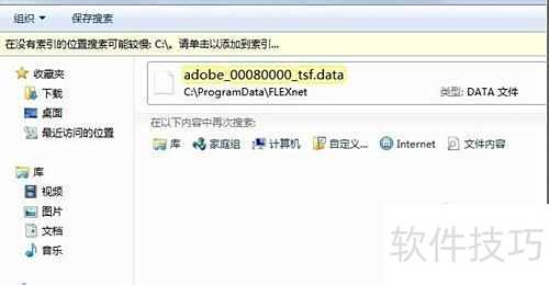 1、 按下F3键,在C盘搜索 adobe_00080000_tsf.data 文件并将其删除。该文件为隐藏属性,需先开启显示隐藏文件选项才能查看和操作。