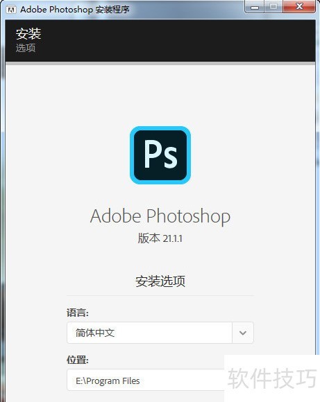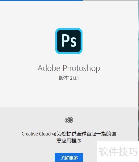 2、 Adobe Photoshop CC 2020安装界面展示,所示。