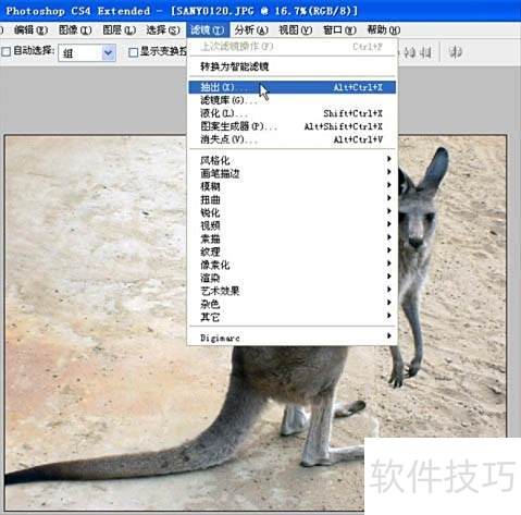 2、 打开素材图,选择滤镜菜单中的抽出命令,或直接按下快捷键。