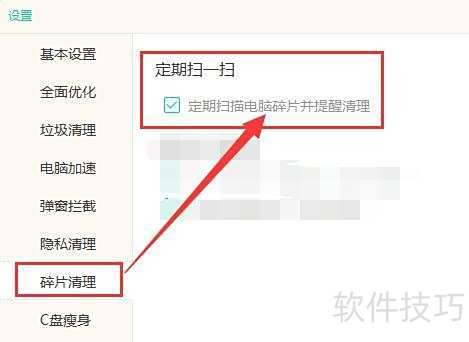 3、 在碎片清理界面的定期扫一扫选项中,勾选定期扫描电脑碎片并提醒清理功能,具体操作所示。