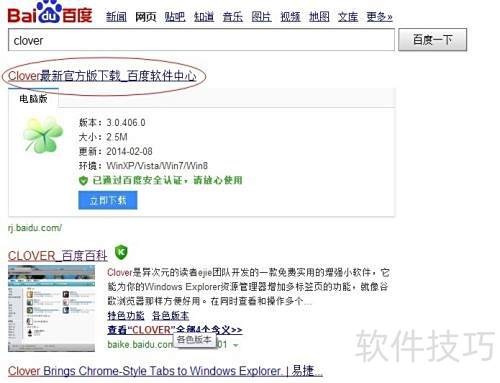 1、 在百度搜索clover,首个结果为百度软件中心提供的资源,可安全下载使用。