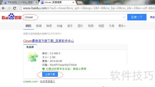 1、 从百度下载Clover安装包,具体步骤见下图。