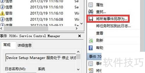 5、 右键选择将所有事件另存为,并将文件保存类型更改为txt格式。