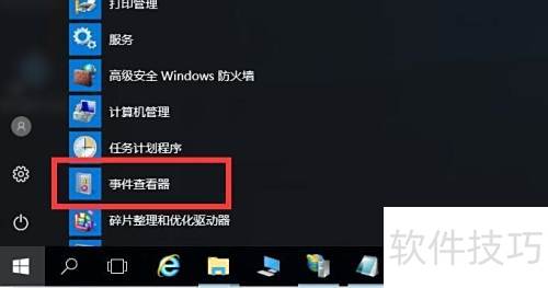 2、 在开始菜单中查找事件查看器,若无此选项,可前往控制面板中寻找相应功能。