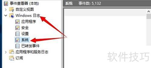 3、 展开Windows日志,选择系统项,右侧将显示相关信息,红色感叹号标识错误内容。