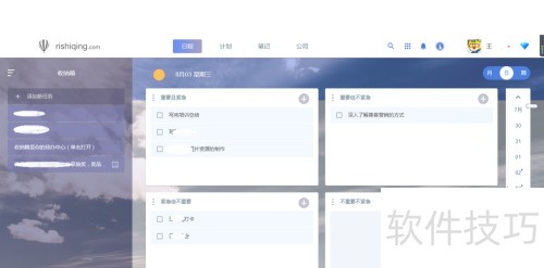 2、 日程功能用于规划当日工作任务。该功能分为两个步骤:首先将当天需完成的事项统一录入收纳箱;随后通过四象限法进行优先级排序,系统默认按重要性和紧急性划分,可直接将收纳箱中的任务拖入相应象限,便于高效安排和执行工作。