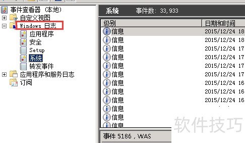 3、 打开事件查看器,依次展开Windows日志并选择系统,右侧即可显示相关记录信息。