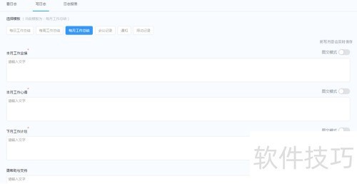 3、 日志功能包含撰写、查看及列表管理,撰写日志可按时间划分为每日、每周和每月工作日志,便于记录与回顾工作内容。