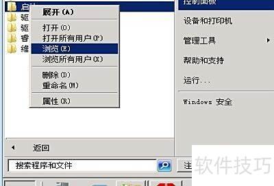 7、 找不到启动项位置?点击左下角开始按钮,打开菜单后进入所有程序,右键启动选项,选择浏览即可查看启动目录。