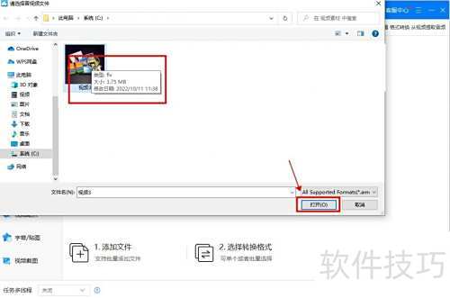 2、 点击,在电脑中找到F4V格式的视频,选中后点击右下角的按钮即可。