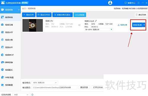 4、 最后确认输出格式,点击,完成后点击,即可在电脑中找到已由f4v转换为mp4格式的视频文件。
