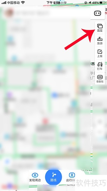 1、 打开手机百度地图,进入后点击图层选项即可开启。