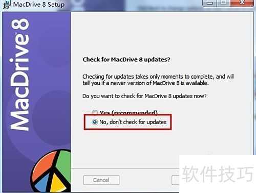 5、 在检查MacDrive 8更新页面,选择否,不要……,然后点击下一步继续操作。