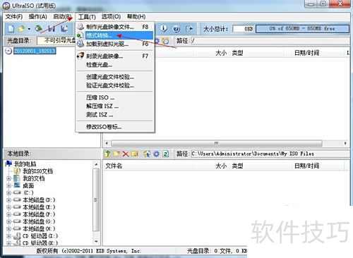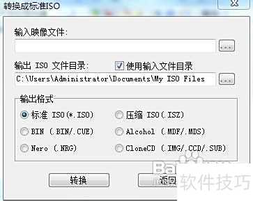12、 选择输入的映像文件及输出ISO的保存路径,在输入格式中选标准 ISO(*.ISO),然后点击转换按钮开始操作。