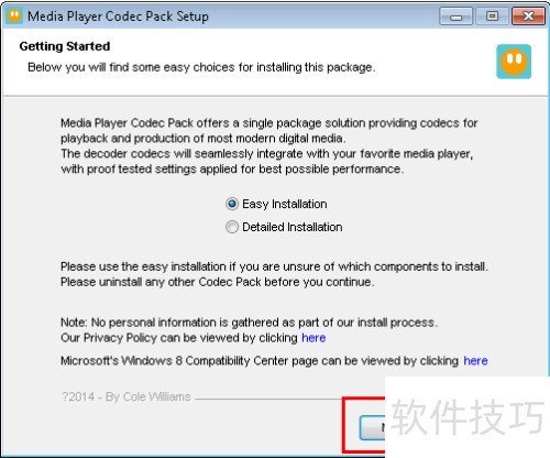 2、 双击运行media player codec pack V4.3.3安装程序,随后点击下一步继续安装操作。
