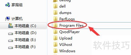 3、 打开电脑的C盘,进入名为Program Files的文件夹。